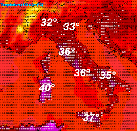 1 ONDA DI CALORE tra lunedì 19 e giovedì 22 giugno: l’affondo di una saccatura carica di aria fresca e temporali tra Francia e Spagna favorirà una temporanea rimonta dell’anticiclone africano sull’Italia con una massa d’aria calda che colpirà in prevalenza il centro e il sud con picco tra giovedì e venerdì, quando potranno raggiungersi punte di 40°C sulle zone interne della Sardegna, di 36-37°C lungo le regioni tirreniche e le zone interne sicule e i 35-36°C sul basso Adriatico. Farà caldo ma non estremo sul settentrione e sul medio Adriatico. Qui le temperature massime attese per giovedì 22 giugno: