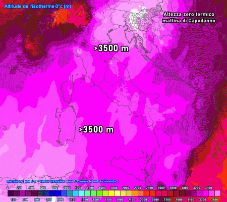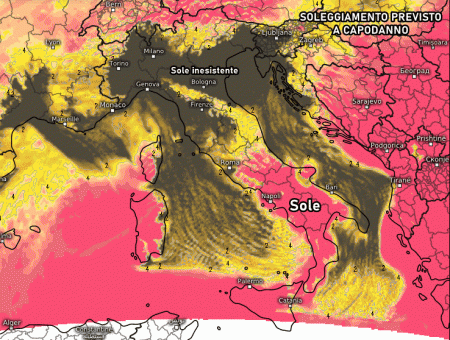 E a Capodanno? L’anticiclone africano si rinforzerà ulteriormente e regalerà stabilità su tutta Italia, con le dovute differenze sul tempo presente. Ovviamente nebbie e nubi basse saranno ben presenti al nord, mar Ligure e alto Tirreno, mentre splenderà il Sole su gran parte del centro e del sud. Le temperature saliranno ulteriormente fino a sfiorare i 19-20°C sul Meridione. Clima gradevole atteso anche in montagna, dove lo zero termico si spingerà oltre i 3500 metri di quota in via del tutto anomala, clamorosamente anomala.
