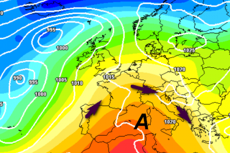 La bolla calda dall'entroterra africano pare avvicinarsi a fine mese ma l'anticiclone si mostrerebbe ancora facilmente perforabile.