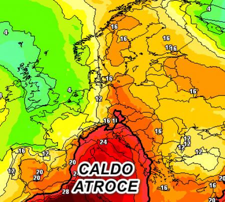 Ecco la traccia della lingua infuocata che oggi interesserà quasi tutta l’Italia. A 1500 metri si prevedono sulla verticale del centro-sud isoterme comprese tra 24 e 25°, con una punta di 28° nel sud della Sardegna. Si tratta di valori folli anche per i mesi di luglio e agosto.