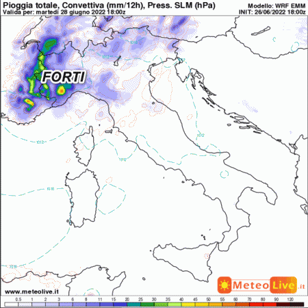 La giornata di domani, martedi 28 giugno, vedrà invece lo sviluppo di temporali anche forti sulle regioni settentrionali: