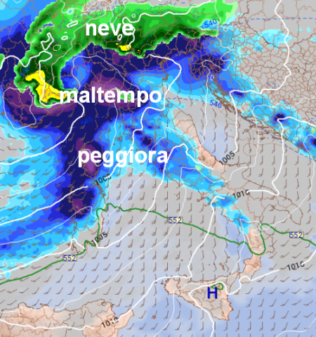 Martedì nuova perturbazione in transito soprattutto al centro e al sud, mercoledì altro fronte molto attivo al nord e lungo le regioni centrali tirreniche con strascichi sino a giovedì. Tra venerdì e lunedì ondata di freddo sempre più probabile, più intensa al nord e in Adriatico, qui con possibili risvolti nevosi nel fine settimana.