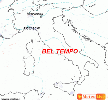 Al nord le nubi tenderanno ad aumentare e saranno possibili alcuni piovaschi sulla Liguria e tra l’alto Piemonte e l’alta Lombardia. Sul resto d’Italia bel tempo a parte residui addensamenti al sud in via di attenuazione.
