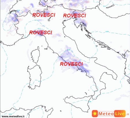 Rovesci saranno possibili su alta Lombardia, Triveneto, Liguria centro-orientale, alta Toscana, Lazio e nord Campania. Su tutte le altre regioni assisteremo ad un aumento della nuvolosità, ma le piogge saranno complessivamente scarse o nulle. Rinforzeranno anche i venti da sud-ovest e le temperature caleranno un po’, specie nelle aree raggiunte dai fenomeni.