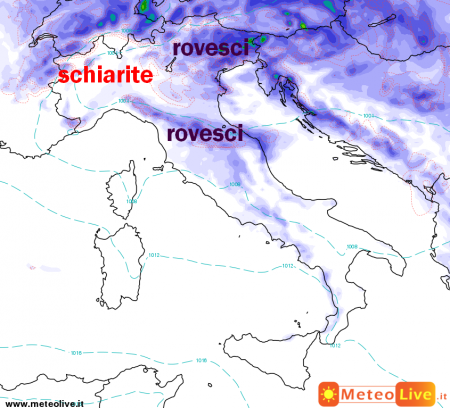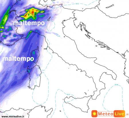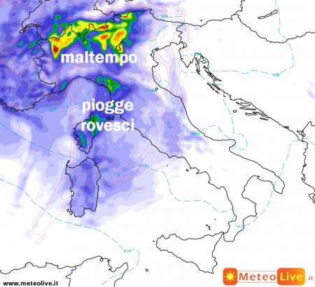 -il peggioramento serale su Sardegna e nord-ovest con forti rovesci, in estensione verso il resto del nord e sulle centrali tirreniche.