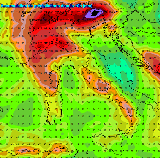 Accumuli di oltre 250mm e più sono ragguardevoli, figli di una situazione bloccata che favorirebbe la formazione e la risalita verso il settentrione di nuclei piovosi particolarmente intensi. Del resto l’immagine di copertina parla da sola.