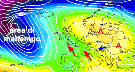 Ecco però che all’improvviso compaiono le tendenze dell’anticiclone a perdere di vista il Mediterraneo, per l’Epifania lo vediamo sbilanciarsi verso nord in questa linea di tendenza del modello americano, aprendo la strada alle correnti atlantiche ma anche ad un parziale e possibile rientro di venti da est più freddi: