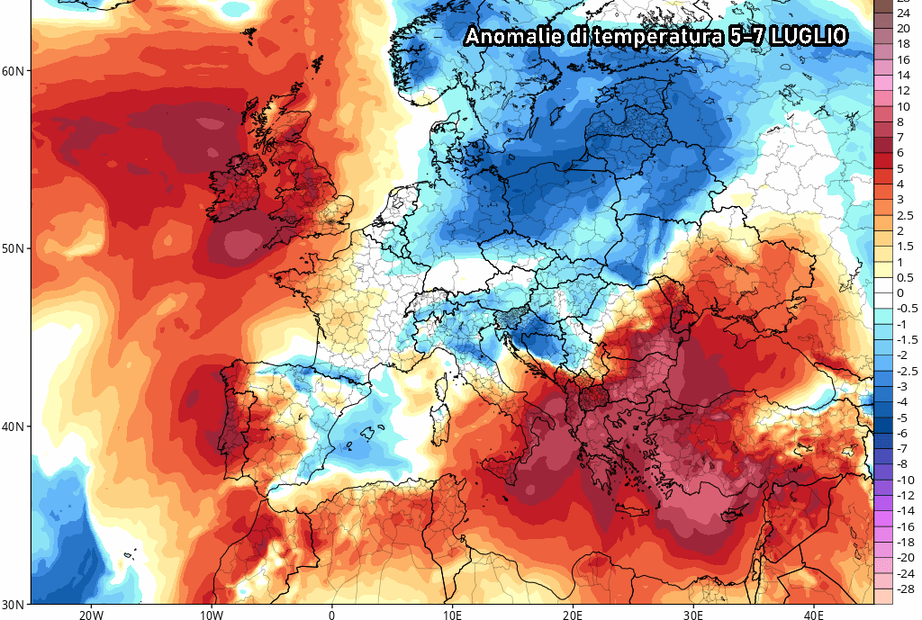 Naturalmente è ancora prematuro parlare di un vero e proprio break estivo, soprattutto perché potrebbe trattarsi di una pausa dal grande caldo solo di qualche giorno. Il mese di luglio, infatti, potrebbe rivelarsi piuttosto caldo su tutta la nostra penisola, con temperature spesso superiori alle medie del periodo, intervallate da improvvisi guasti del tempo e brevi refoli freschi dal nord Atlantico.