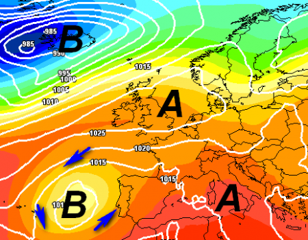 Eccola lì la "FOSSA delle CANARIE", eccola lì. E’ quella che per anni ha mandato l’inverno in naftalina, l’estate nel forno. E a volte, ritorna. L’affondo che vedete è previsto per sabato 16 settembre, quell’ingranaggio lì si incepperà ancora a ridosso del Portogallo o riuscirà a muoversi verso levante nei giorni successivi?