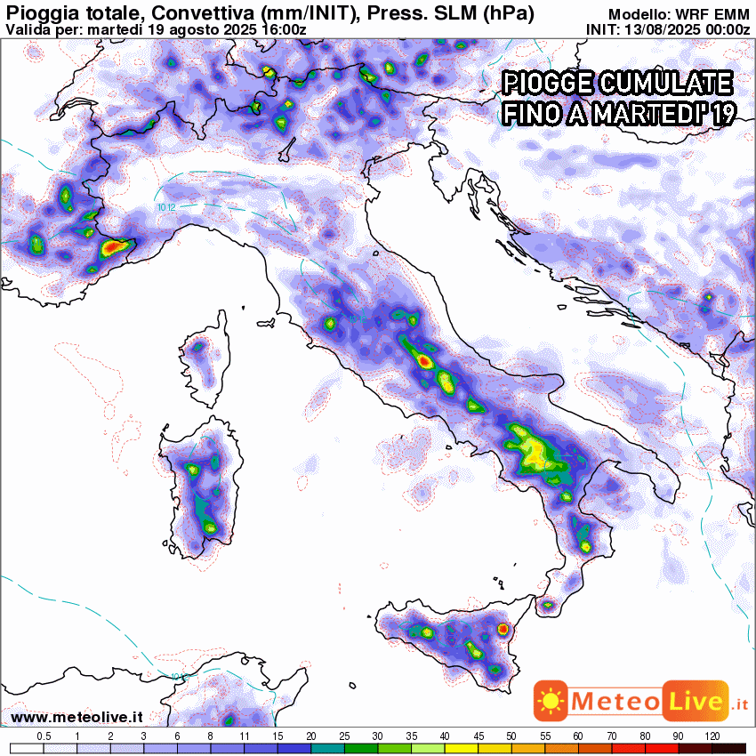 Nel corso di questo giovedì avremo un notevole incremento dell’instabilità su tutto il centro-sud, specie nelle aree interne di Puglia, Basilicata, Calabria, Sicilia, Campania, Molise, Lazio, Abruzzo e Sardegna. Entro sera o tarda sera i temporali potrebbero interessare anche Lombardia, Emilia, Piemonte, Valle d’Aosta e Trentino-Alto Adige, fino in pianura.