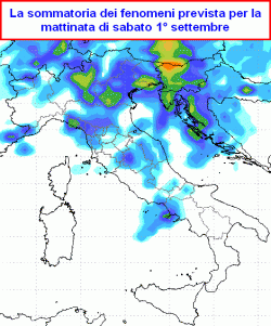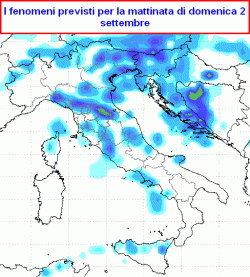 est, Emilia-Romagna, Toscana, Umbria, Marche, in parte su basso Lazio, Campania, Molise e sud Abruzzo in mattinata. Su tutte queste aree saranno possibili piogge, rovesci e temporali, localmente caratterizzati da pioggia copiosa, raffiche di vento ed isolate grandinate. Su Piemonte, Valle d’Aosta, Liguria nuvolosità irregolare con locali rovesci, più probabili sui rilievi. Sulla Sardegna abbastanza soleggiato, così come sul resto del meridione. Temperature in calo, specie nelle zone interessate dai maggiori fenomeni.
