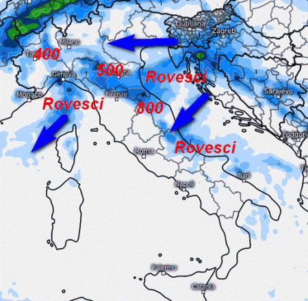 Il fronte freddo dovrebbe valicare le Alpi tra la serata e la prossima notte, determinando rovesci su alcune aree della Liguria, nonchè al nord-est e lungo il versante adriatico. Si tratterà comunque di rovesci locali alternati a lunghe pause asciutte.