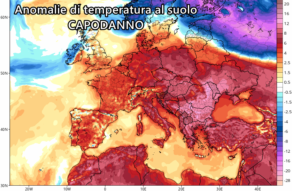 Davvero clamorose le anomalie di temperatura previste nel giorno di Capodanno:
