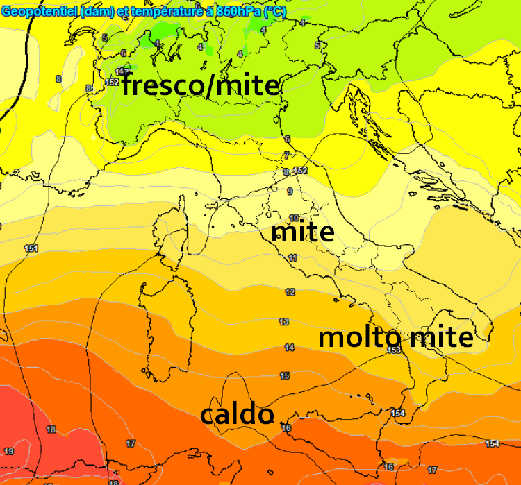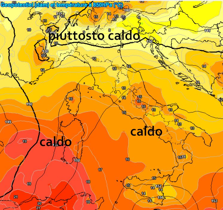 Per Pasquetta il rialzo termico guadagnerebbe anche il nord, compresi i fondovalle alpini, portando i valori a superare i 20°C nelle ore pomeridiane, al centro-sud, lontani dal mare, si potrebbero superare anche i 25-26°C, guardate le temperature a 1.500m, dove i valori risulterebbero superiori alla norma: