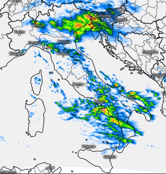 Come si evince dal modello a scala locale, avremo a che fare con temporali disorganizzati e irregolari ma piuttosto forti, pertanto non escludiamo improvvise grandinate, intense raffiche di vento e pioggia a carattere di nubifragio, sebbene in via del tutto localizzata su queste aree colorate: