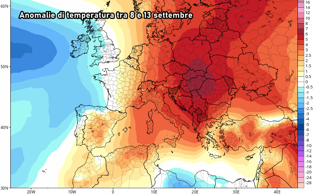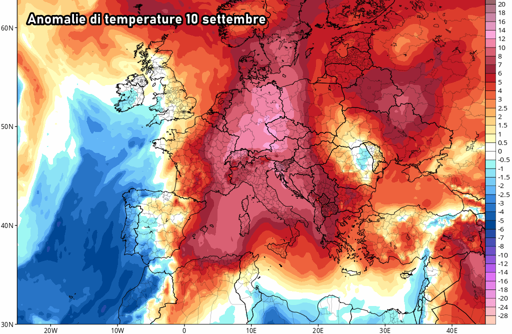 Potremmo definirla come “Estate settembrina” ma effettivamente farà parecchio più caldo del solito non solo in Italia ma su gran parte dell’Europa centro-meridionale. Le temperature saliranno fortemente, di almeno 8-10°C sopra le medie tipiche del periodo in quota (a circa 1500 metri di altitudine), pertanto potremo parlare di valori pienamente estivi.