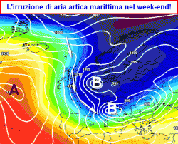 Più netto e deciso il passaggio perturbato del prossimo week-end con una depressione padana di quelle profonde, (985hPa) il fronte freddo accompagnato da correnti talmente intense da nord-ovest da sfondare anche oltralpe per alcuni km portando neve ben oltre lo spartiacque alpino nel corso della giornata di sabato.