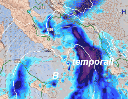 Da notare che, ad accompagnare il fronte, c’è un modesto ma non trascurabile minimo depressionario, che rallenterà la traslazione dei fenomeni verso sud, esaltando la fenomenologia, che al centro e al sud potrà presentarsi anche sottoforma di rovesci e temporali. La neve cadrà sulle Dolomiti e l’est delle Alpi attorno ai 1300-1500m.
