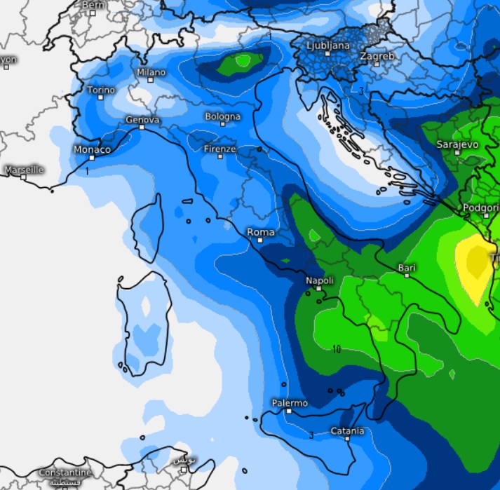 Le analisi meteorologiche indicano una potenziale evoluzione verso un peggioramento. I modelli attuali mostrano una tendenza all’arrivo di nuove correnti fredde dal nord Europa dirette verso sud. Se queste correnti dovessero raggiungere il Mediterraneo centro-orientale, potrebbero rafforzare la depressione atmosferica in atto e determinare un aumento dell’instabilità meteorologica sull’Italia, come evidenziato da un primo scenario, al momento il più pessimistico anche se non il meno attendibile: