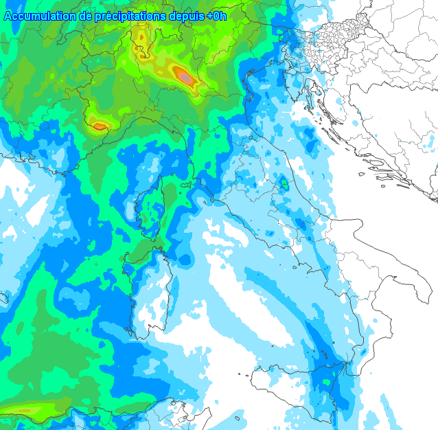 Ecco le conseguenze a livello precipitativo secondo il modello ICON tradotto nella sommatoria dei fenomeni previsti sino a giovedì sera 11 aprile: le aree più bersagliate saranno quelle lombarde, del Trentino, del Cuneese e dei Lessini nel Veneto: