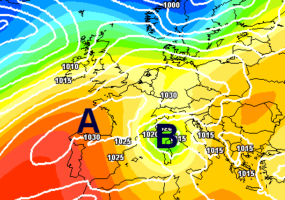 Ecco la pronta rimonta dell’anticiclone tra venerdì e domenica con termiche di +12°C a 1500m che sottendono valori di 24-25°C in pianura, localmente anche superiori: