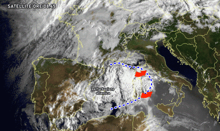 Il satellite parla chiaro: una nuova perturbazione proveniente da ovest si prepara ad invadere il Mediterraneo centrale nel corso della giornata odierna. Le prime piogge stanno interessando la Sardegna, ma il peggioramento coinvolgerà tante altre regioni nelle prossime ore.