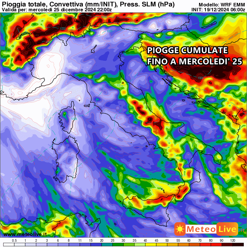 Tutta la pioggia prevista fino al 25 Dicembre: