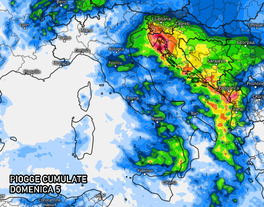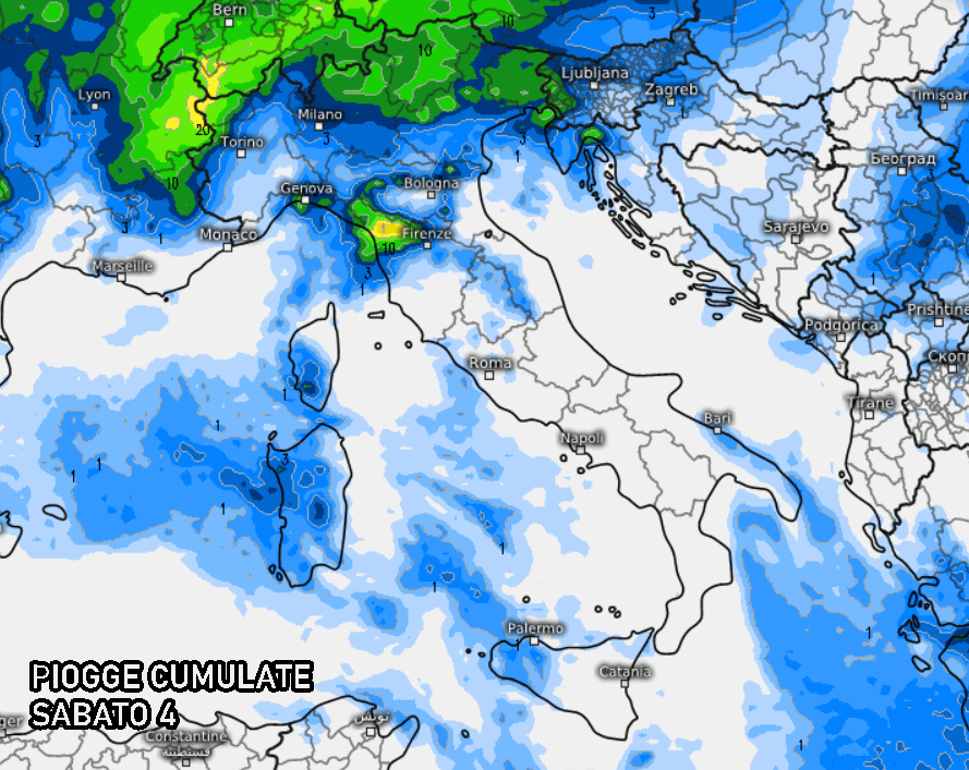 La sua influenza sulle regioni del Nord sarà davvero marginale e relegata essenzialmente alla giornata di sabato. Le nubi aumenteranno un po’ ovunque e avremo anche precipitazioni sparse su Liguria centro-orientale, alta Toscana, appennino emiliano ed anche su Valle d’Aosta, alto Piemonte, Lombardia, Trentino Alto Adige, Veneto e Friuli Venezia Giulia. Arriverà anche qualche acquazzone e qualche locale temporale, però si tratterà di fenomeni veloci, poiché la perturbazione avrà gran fretta di raggiungere le regioni del centro e del sud.