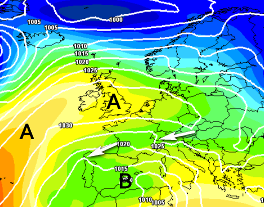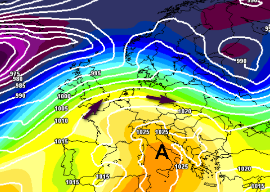 Ecco lo schema barico dal sapore primaverile che respireremo durante quel frangente (sempre che i modelli non cambino idea):