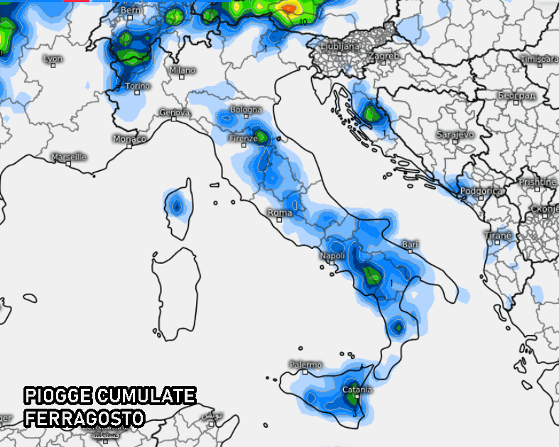 Difficile che questi acquazzoni possano raggiungere le coste e le pianure, ma naturalmente è ancora troppo presto per affermarlo con certezza. Qualche improvviso temporale potrebbe scoppiare anche al Nord e sull’Appennino centro-settentrionale, ma sarà presumibilmente il Sud il settore più esposto. Si tratterà di fenomeni isolati e di breve durata, seppur potenzialmente forti.