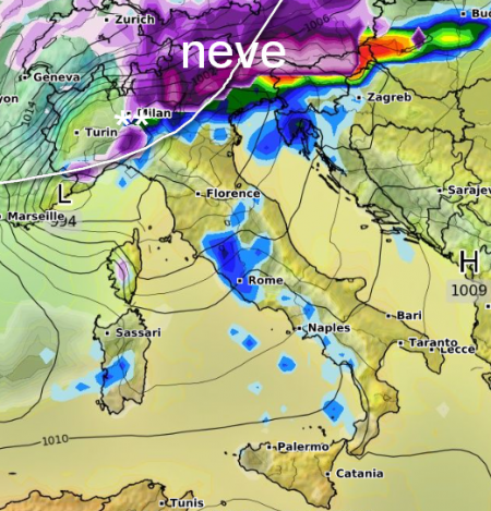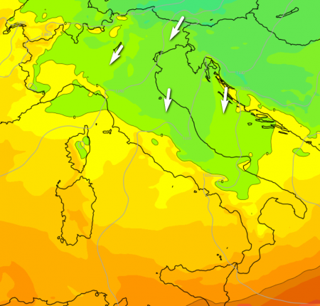 Ma attenzione al colpo di scena: martedì un fronte freddo molto attivo valicherà le Alpi investendo le regioni settentrionali con un carico di rovesci anche di tipo nevoso sino in pianura stante l’intensità dell’irruzione artica. Il fronte traslerà poi rapidamente verso l’alto e medio Adriatico, esaurendo la sua azione entro la notte su mercoledì.