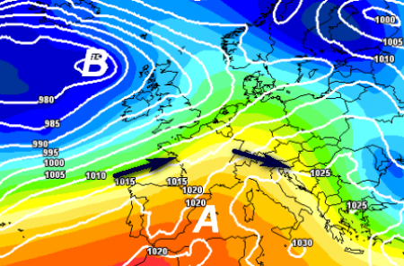 Poi ecco spuntare l’anticiclone, che assicurerà sino a giovedi 30 marzo condizioni di tempo progressivamente più stabile e mite ovunque, qui una mappa che testimonia la sua avanzata:
