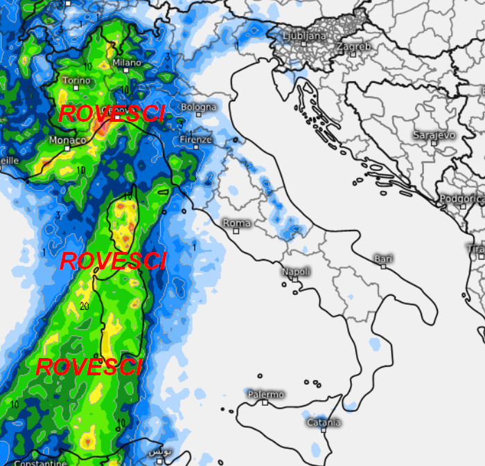 Ancora piogge al nord-ovest soprattutto in mattinata, anche abbastanza intense tra la Liguria e la Lombardia. Rovesci anche su Corsica, Sardegna ed ovest Sicilia. Più irregolari le piogge nelle aree interne e Appenniniche dell’Italia centrale e concentrate soprattutto nel pomeriggio-sera, mentre il tempo resterà probabilmente asciutto lungo il versante adriatico, sull’estremo nord-est e sulla Puglia, con schiarite alternate ad annuvolamenti.