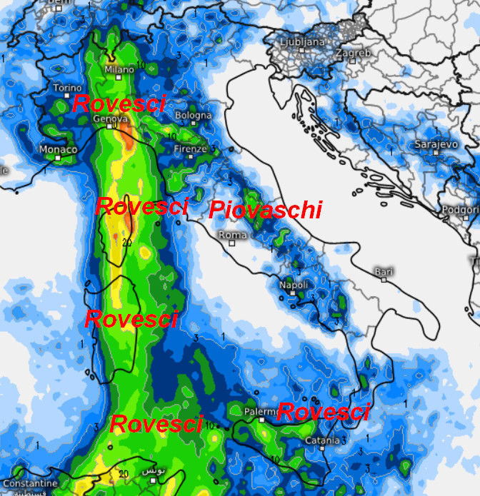Iniziamo con la sommatoria delle piogge attese in Italia nell’arco della giornata di PASQUA: