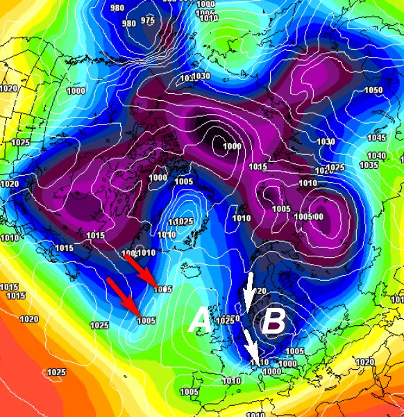 L’alta pressione groenlandese mette radici anche in pieno Atlantico e la previsione ne viene stravolta e scoppia una di quelle “liti” tra modelli che la dice lunga sul caos che sta generando questo ramo del vortice polare.