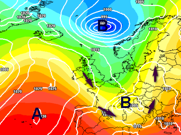 L’affondo è evidenziato da molti modelli, vi mostriamo una mappa barica che chiarisce perfettamente la dinamica dell’affondo lungo i meridiani, una lingua fredda che dal Polo praticamente attraversa tutta Europa da nord a sud e piomba sull’Italia: