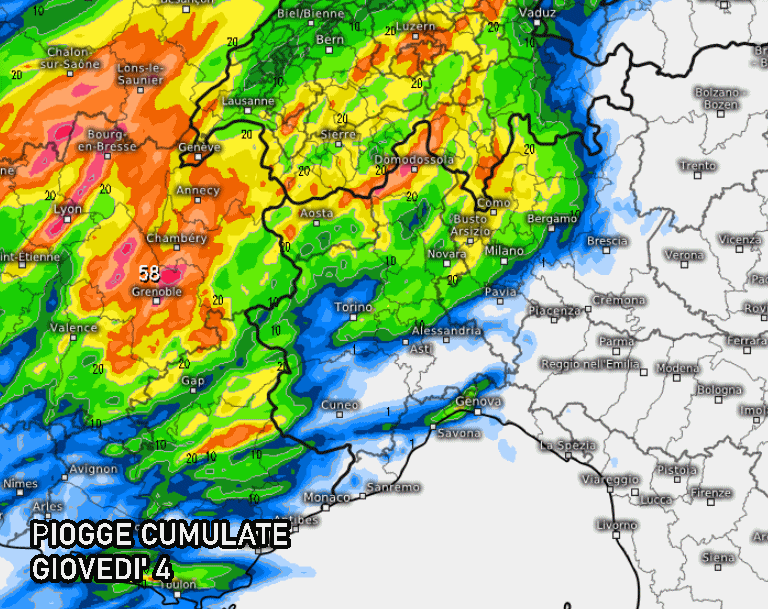 Il guasto del tempo arriverà tra il pomeriggio e la sera di giovedì sulle regioni nord-occidentali: gli ultimi aggiornamenti dei modelli a scala locale ci mostrano l’arrivo di rovesci e temporali soprattutto su Piemonte centro-settentrionale, indicativamente dal torinese verso nord e poi anche Valle d’Aosta e Lombardia nord-occidentale. Gli accumuli pluviometrici potranno oscillare tra i 10 e i 50 mm, ma non escludiamo qualche picco anche superiore in presenza dei forti temporali. Qualche veloce rovescio atteso anche tra savonese e genovese.