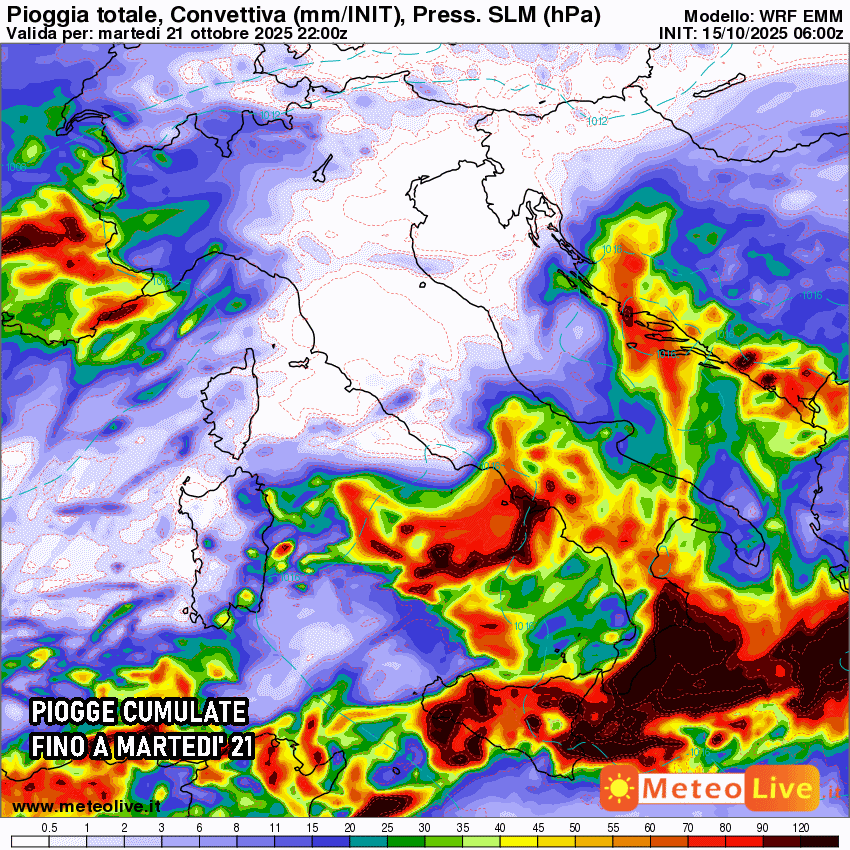 Si sta dunque aprendo una fase autunnale degna di nota, in cui la pioggia potrebbe bagnare moltissime località, in particolar modo quelle meridionali. Gli accumuli totali fino al termine della settimana potrebbero superare i 100 mm sull’arco ionico, specie sulla Calabria, con effetti localmente intensi.