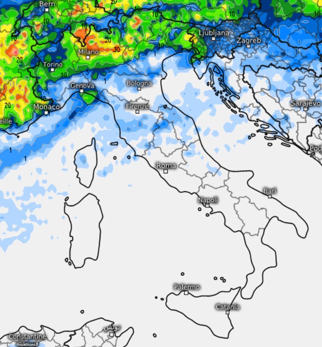 Le regioni settentrionali, al contrario, si troveranno maggiormente esposte al flusso di correnti leggermente più instabili in quota. Questo scenario favorirà lo sviluppo di rovesci e temporali sparsi, in particolare su Alpi, Prealpi e sul Triveneto, ma con possibili interessamenti anche della Pianura Padana a nord del fiume Po, specialmente nelle ore pomeridiane e serali. Come per la giornata di sabato, saranno possibili anche forti temporali accompagnati da grandine.
