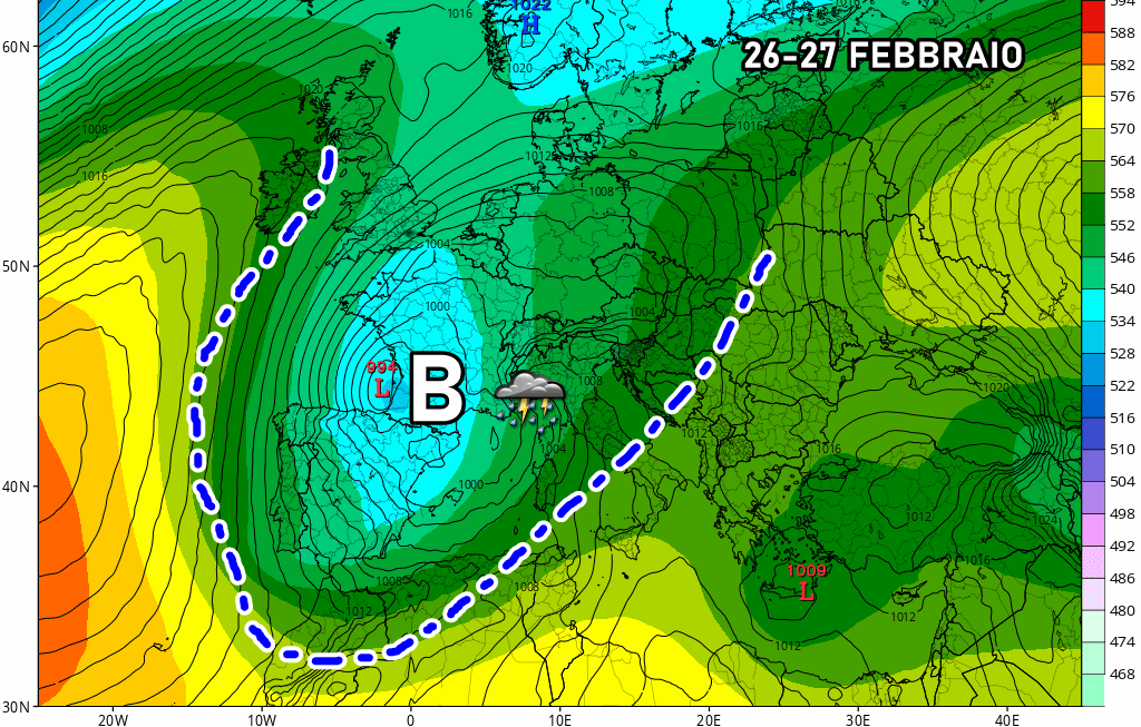 L’apice di questa fase perturbata arriverà, ormai con alta probabilità, tra il 26 febbraio e il 1° marzo, momento in cui una vasta saccatura fresca nord-atlantica si immergerà fin sul nord Africa, con effetti decisamente vistosi lungo la nostra penisola.