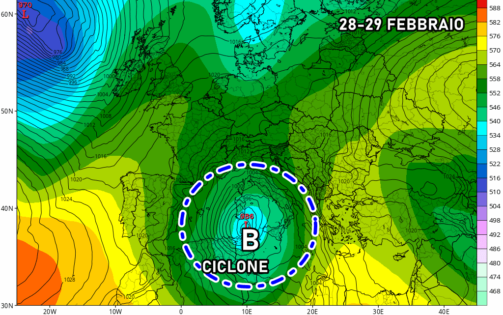 Maltempo a più riprese nel finale di Febbraio. Ciclone confermato con tanta pioggia prima al nord poi al sud.