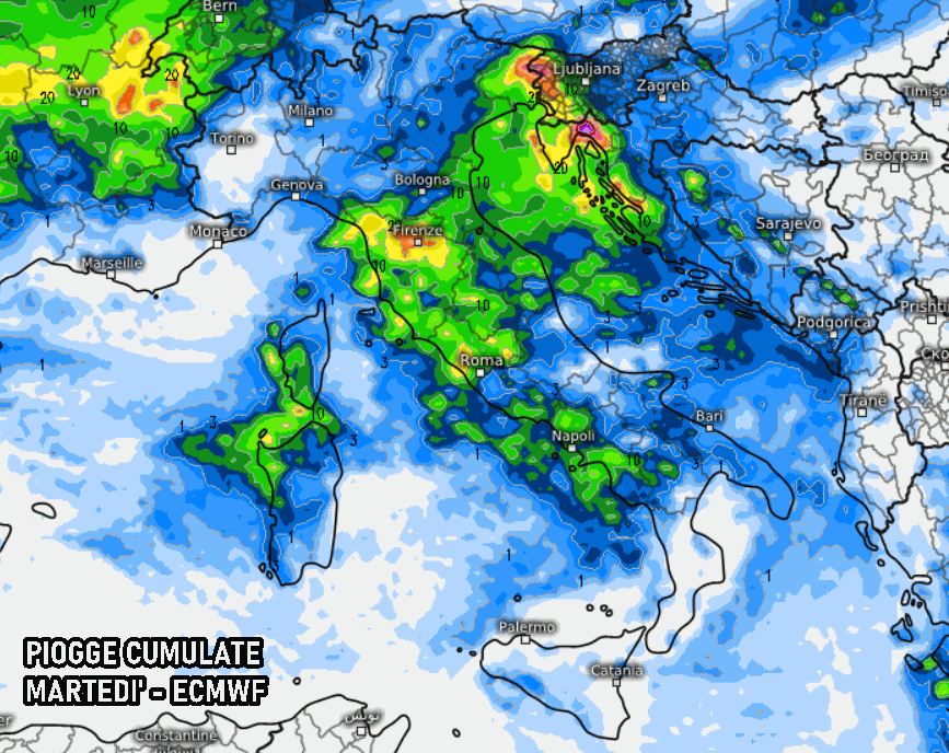 Meteo: quanta pioggia MARTEDI’ 21!