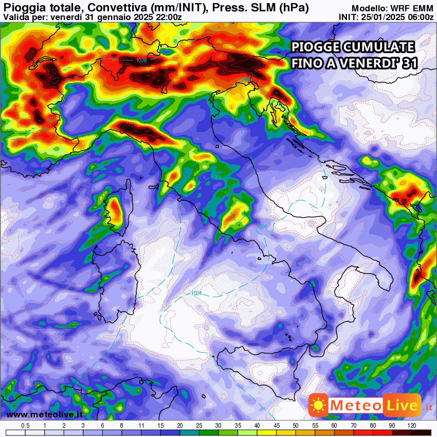 Tutta la pioggia prevista fino al 31 Gennaio: