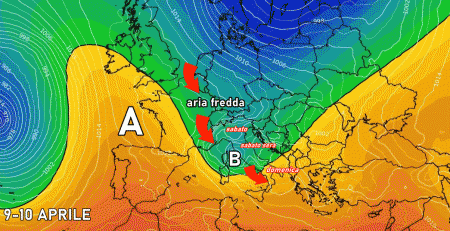 Sabato l’aria fredda del nordovest europeo irromperà sul settentrione dando vita ad acquazzoni e forti temporali, a tratti molto intensi e ricchi di grandine, che provocheranno un repentino calo delle temperature.