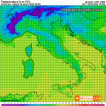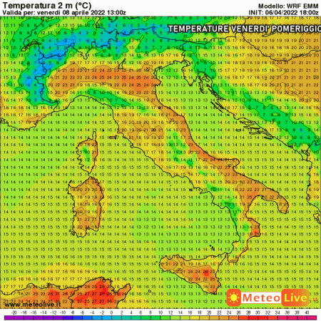 Le temperature saliranno nettamente da nord a sud, come potete posservare dai valori termici previsti nel pomeriggio di venerdì: