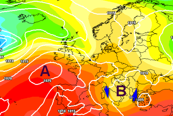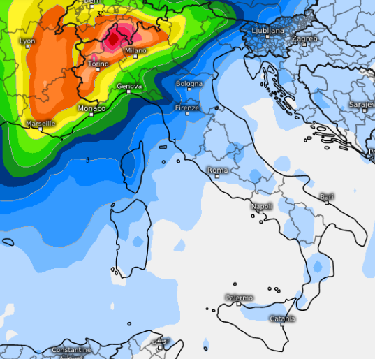 Entro sera i fenomeni dovrebbero poi estendersi al Triveneto e all’Emilia-Romagna, ma non è ancora chiaro (i modelli non sono concordi) se poi la saccatura evolverà in goccia fredda (come vediamo qui sotto), oppure traslerà verso levante, trascurando il resto del Paese.
