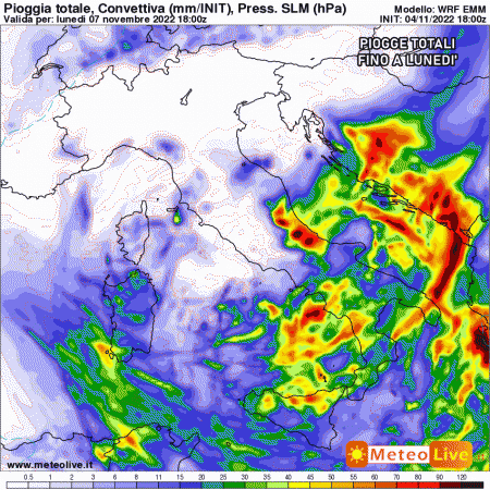 Queste le piogge previste fino alla giornata di lunedì:
