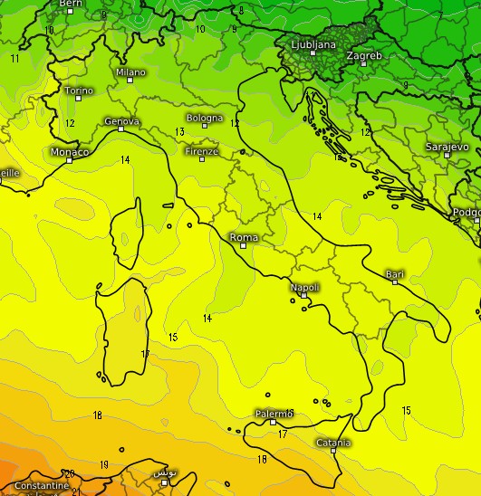 Le aree più coinvolte dovrebbero essere quelle dell’Abruzzo, del Molise, della Campania, della Lucania e della Puglia meridionale, qualche temporale anche tra Sila ed Aspromonte in Calabria, quasi nulla in Sicilia, così come in Sardegna, dove però bisognerà mettere in conto una giornata ventilata sulle spiagge con mare mosso.