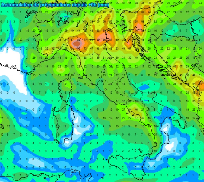In ogni caso questi sono gli accumuli previsti sino al 25 aprile: come vedete il fulcro del maltempo sarà soprattutto l’Emilia, il Veneto, la Lombardia, il basso Piemonte, poi a seguire Romagna, medio Adriatico e basso Tirreno, instabilità comunque anche per le altre regioni, quasi in ombra pluviometrica il Canton Ticino, lontano dall’azione depressionaria, oltre che l’est della Sardegna e della Sicilia, che rimarranno sottovento.