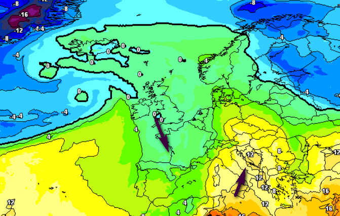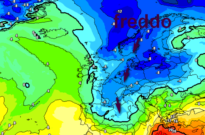 Guardate le temperature a 1500m associate a questa saccatura che andrà a colpire segnatamente il nord-ovest: